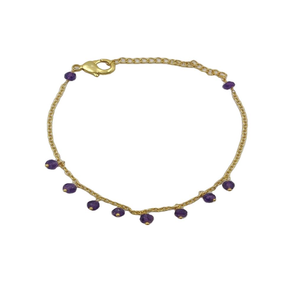 กำไลข้อมือปรับ925เงินสเตอร์ลิงพร้อมลูกปัดอเมทิสต์