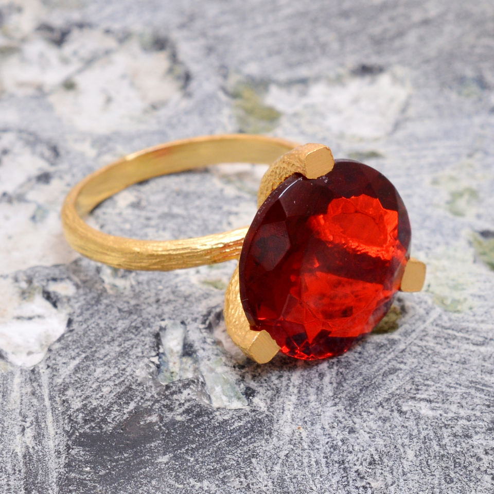แหวนพลอยโกเมนแบบธรรมชาติสำหรับผู้หญิงโกเมนชุบทองสีเงินแท้แบบปรับ925ได้