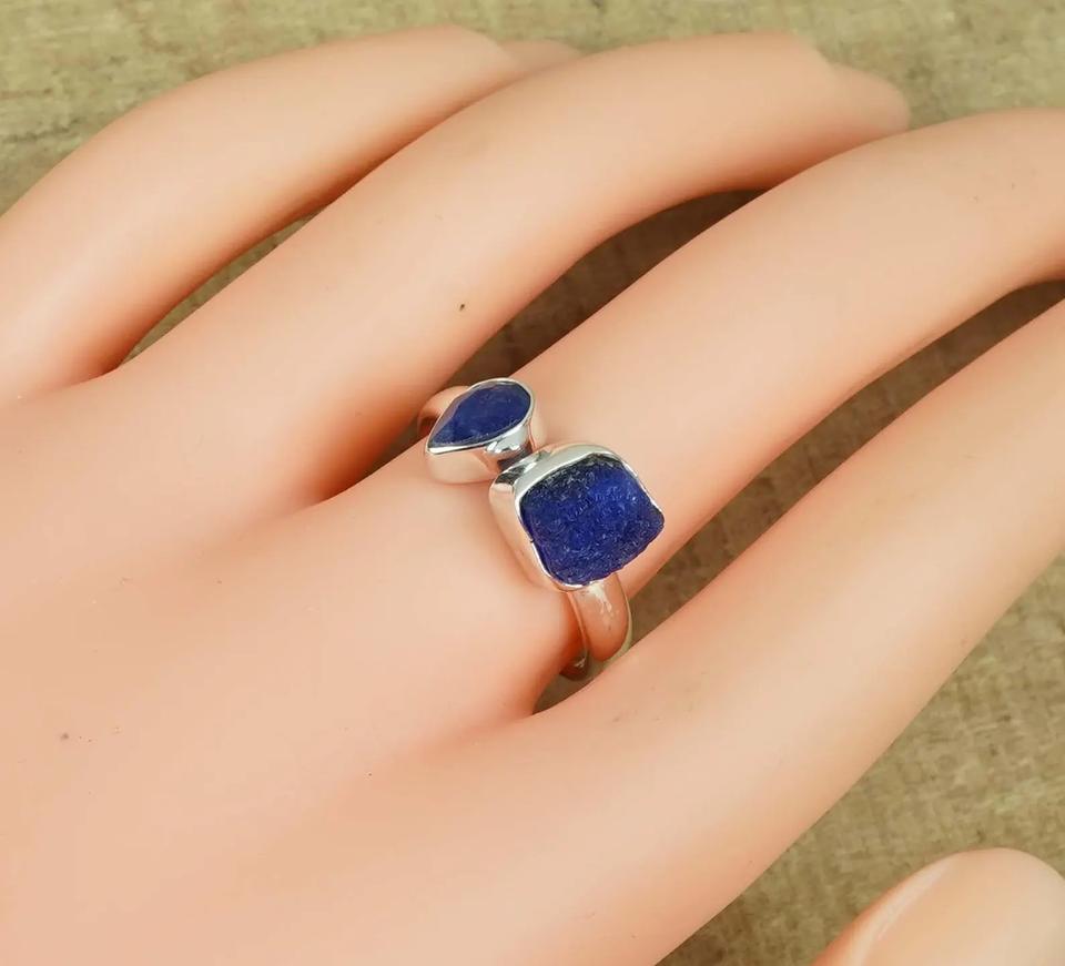 แหวนพลอยแซฟไฟร์ตัดหลายจุดทำด้วยมือปรับได้925เงินสเตอร์ลิงทำด้วยมือของขวัญคริสต์มาส