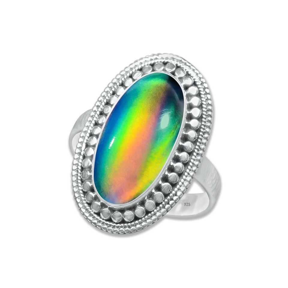 แหวนเงินแท้ 925 ปรับขนาดได้ ประดับด้วยหินโอปอลสีเข้มออโรร่าแบบเจียระไนหลายเหลี่ยม ตัวเรือนแบบเบเซลเซ็ตติ้ง แหวนงานแฮนด์เมดสำหรับงานแต่งงาน