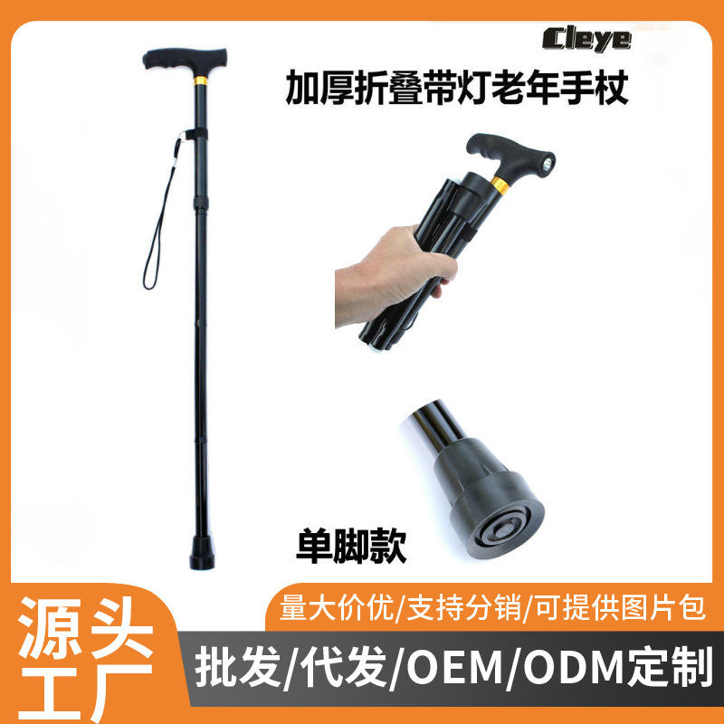 ไม้เท้าเดี่ยวพับได้แบบหนาพิเศษพร้อมไฟ
