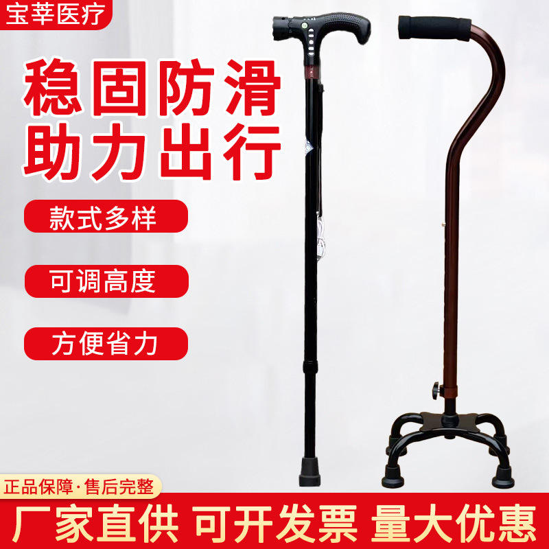 ไม้เท้าอลูมิเนียมอัลลอยด์แบบปรับได้พร้อมฐานสี่จุดสำหรับผู้สูงอายุเพื่อช่วยพยุงการเคลื่อนไหว