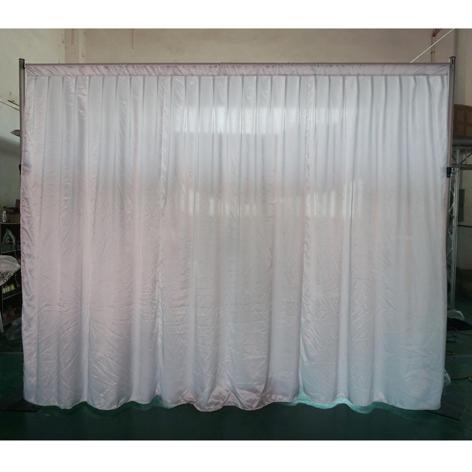 ขาตั้งอลูมิเนียมสีเงินแบบปรับได้พร้อมผ้าม่านฉากหลังสำหรับงานแต่งงาน งานแสดงสินค้า และตกแต่งบูธถ่ายภาพ