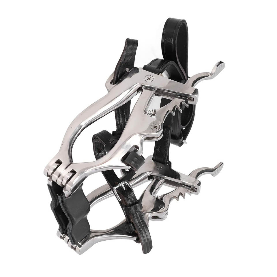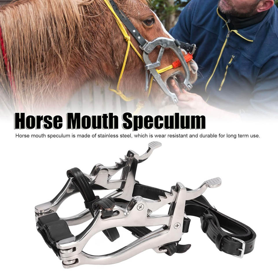 คีมถ่างปากม้าปรับมุมได้สแตนเลสสตีลสำหรับทำฟันสัตวแพทย์กางเกงหนัง PU สายรัดสำหรับทำฟัน