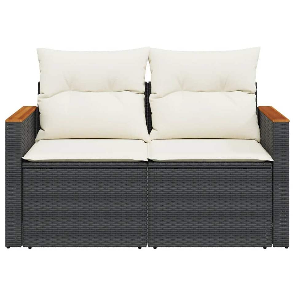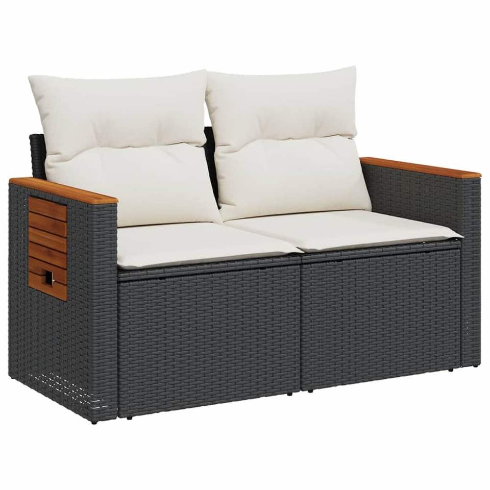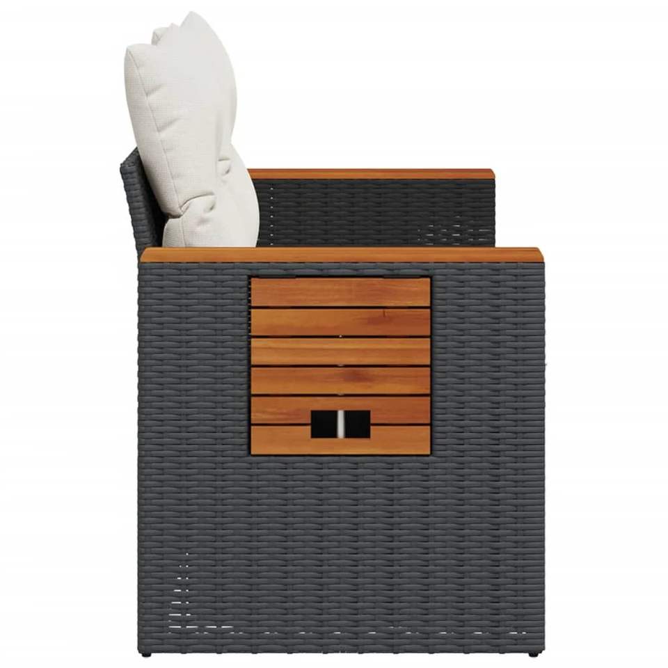 Adjustable Armrest 2-Seater Garden Sofa in Black PE Rattan