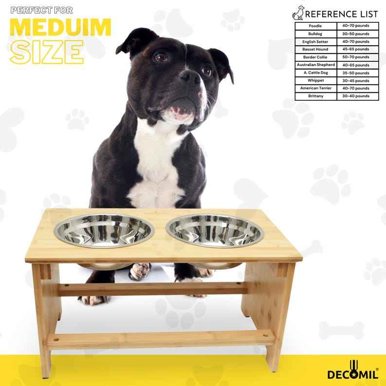 ชามอาหารสัตว์เลี้ยงขนาดเล็กแบบปรับระดับได้ ทำจากไม้ไผ่ สำหรับสุนัขและแมว พร้อมขาตั้งเพื่อความสะดวกในการให้อาหารและน้ำ