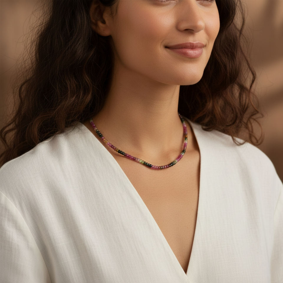 Product Name:Multi Tourmaline Sterling Silver Gold Plated Adjustable Beads Necklace