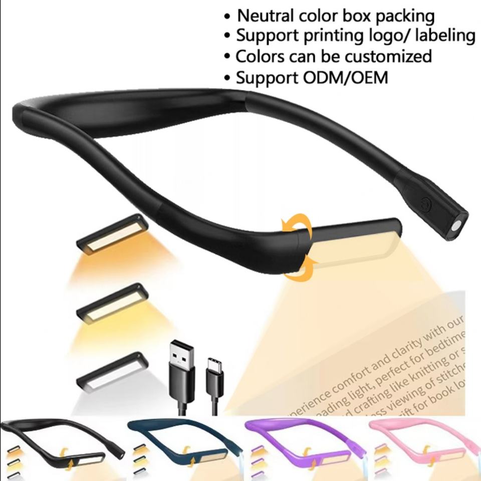 โคมไฟอ่านหนังสือแบบคล้องคอ LED ปรับความสว่างได้ รุ่นใหม่ 3 สี ชาร์จไฟได้ ใช้กับโต๊ะทำงานได้
