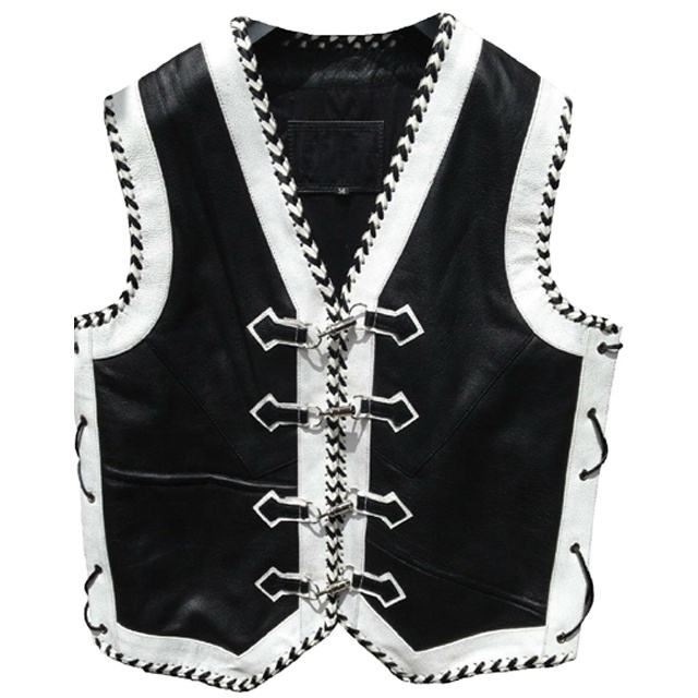 เสื้อกั๊กหนังผู้ชายแบบปรับได้ ระบายอากาศได้ดี เหมาะสำหรับฤดูหนาว สไตล์คลาสสิกสำหรับขี่มอเตอร์ไซค์ แจ็คเก็ตแบบไม่มีแขน สไตล์ไฮสตรีท หนังแท้ 100%