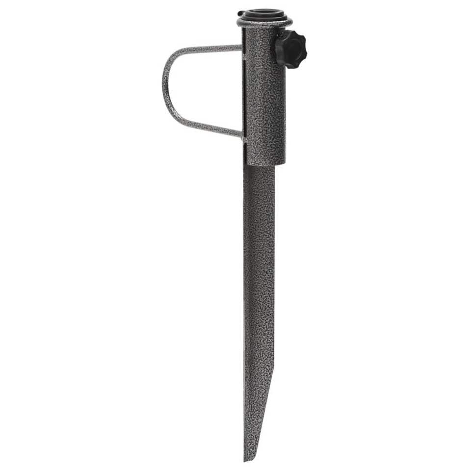ขาตั้งร่มพับได้ขนาดกะทัดรัดพร้อมที่วางแขนเหล็กชุบสังกะสีสีดำ ร่มและฐานสำหรับลานบ้าน