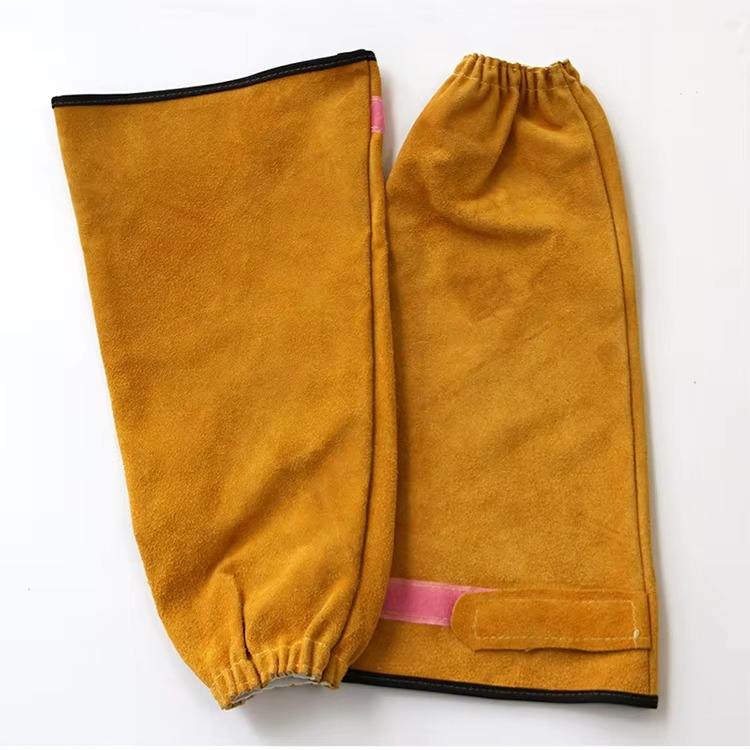 ถุงมือนิรภัยสำหรับช่างเชื่อมป้องกันป้องกันเปลวไฟปลอกแขนเชื่อมหนังกลับแบบแยกได้