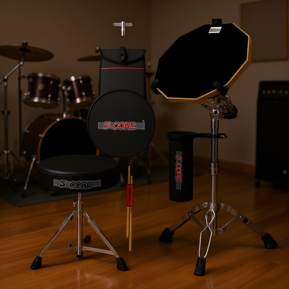 แผ่นซ้อมกลองปรับได้ 5 ระดับ พร้อมเก้าอี้และขาตั้งสำหรับฝึกซ้อมกลอง