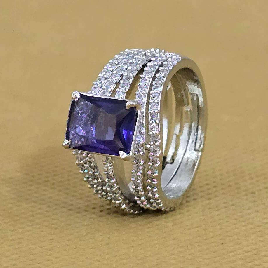 แหวนเพชรสังเคราะห์ดีไซน์เนอร์ปรับขนาดได้แหวนแฟชั่นสวยๆชุบโรเดียม
