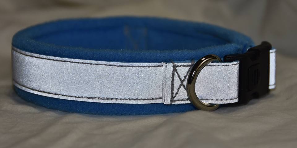 ปลอกคอสุนัขปรับได้, ขนแกะเรียงราย, สีฟ้าคราม, สะท้อนแสง,