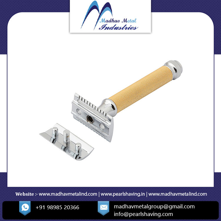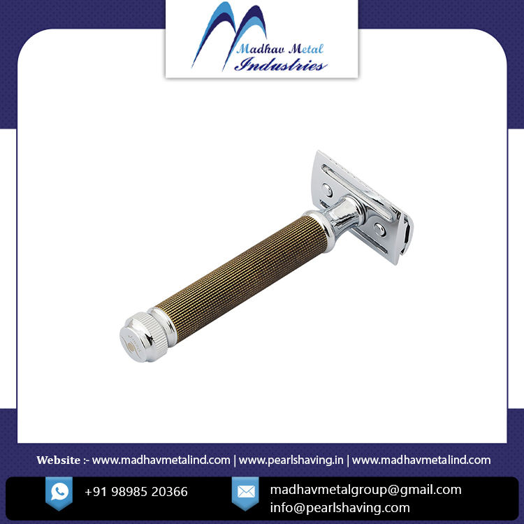 มีดโกนสองคมแบบปรับได้พร้อมด้ามทองเหลืองและใบมีดสแตนเลส ยี่ห้อเพิร์ล แบรนด์สินค้าสั่งผลิต