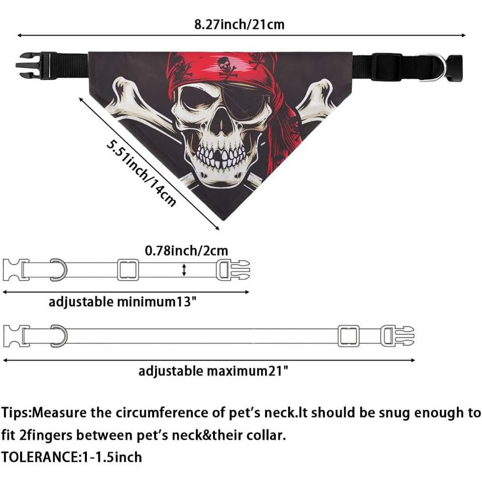 ห่วงรูปหัวกะโหลกโจรสลัดปรับได้สองด้านสำหรับสุนัขสามารถซักเครื่องได้