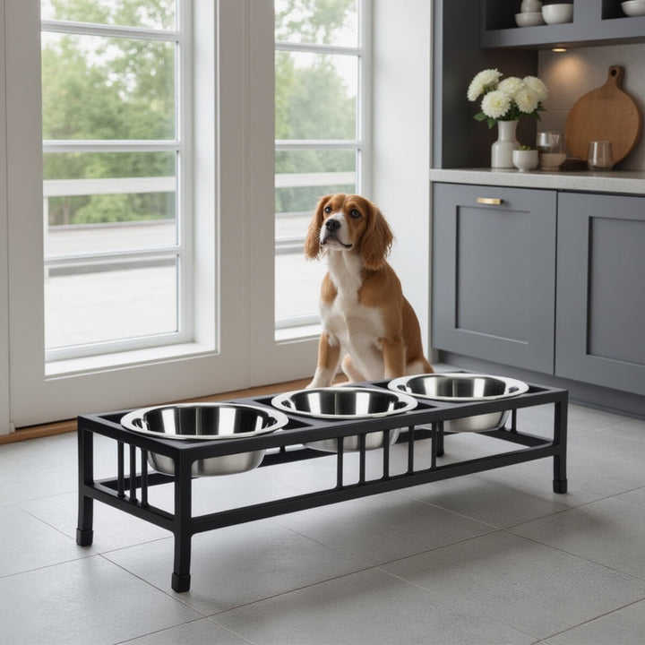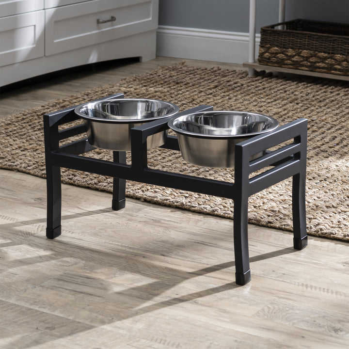 Stylish Elevated Pet Feeder Stand with Dual Bowls and Non Skid Base for Dog Food and Water