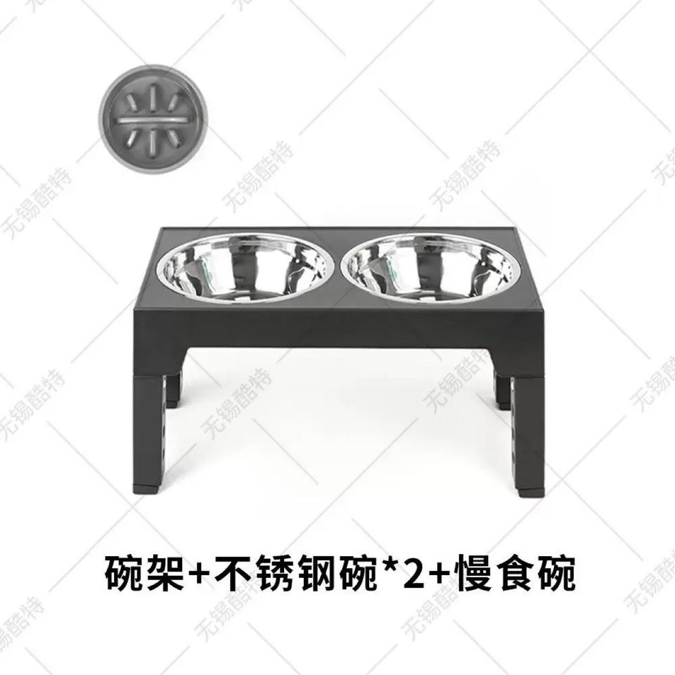 ชามสแตนเลสสีดำแบบสองช่องและชามอาหารช้า 1 ใบ