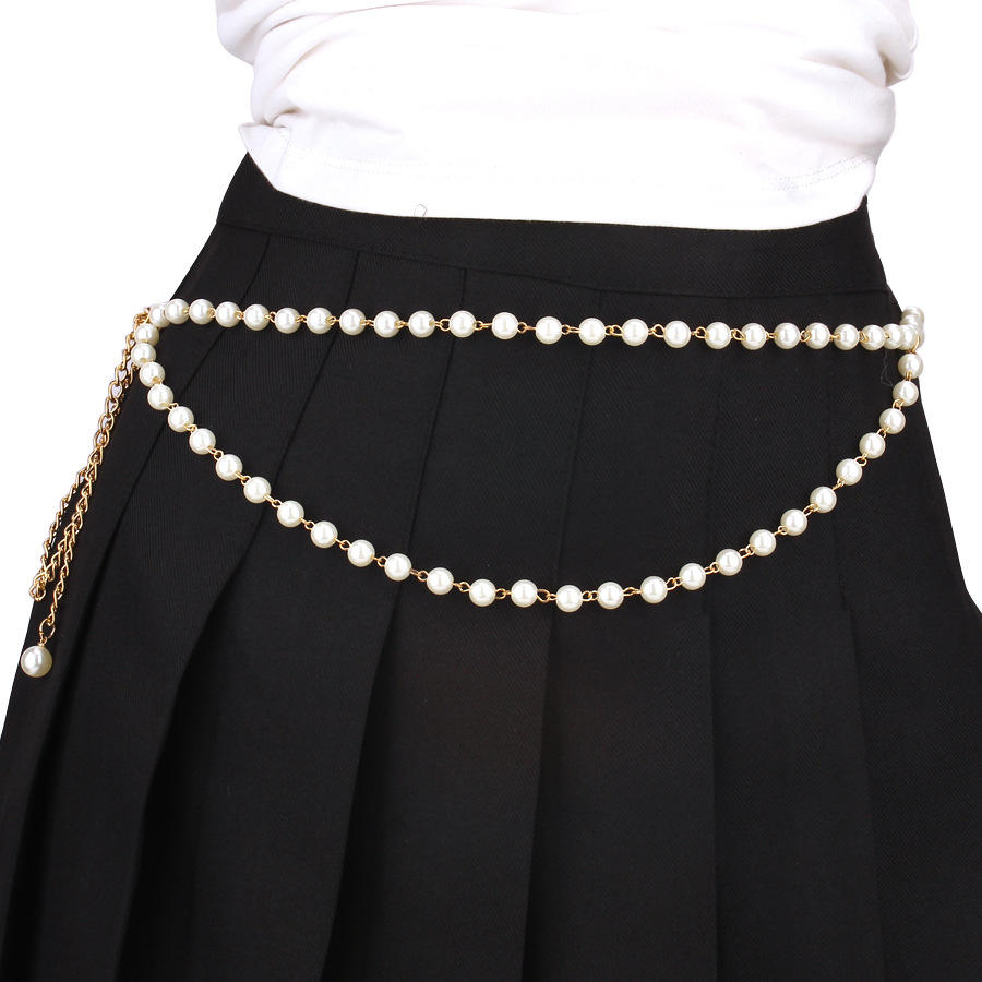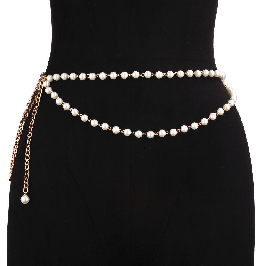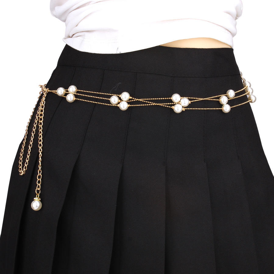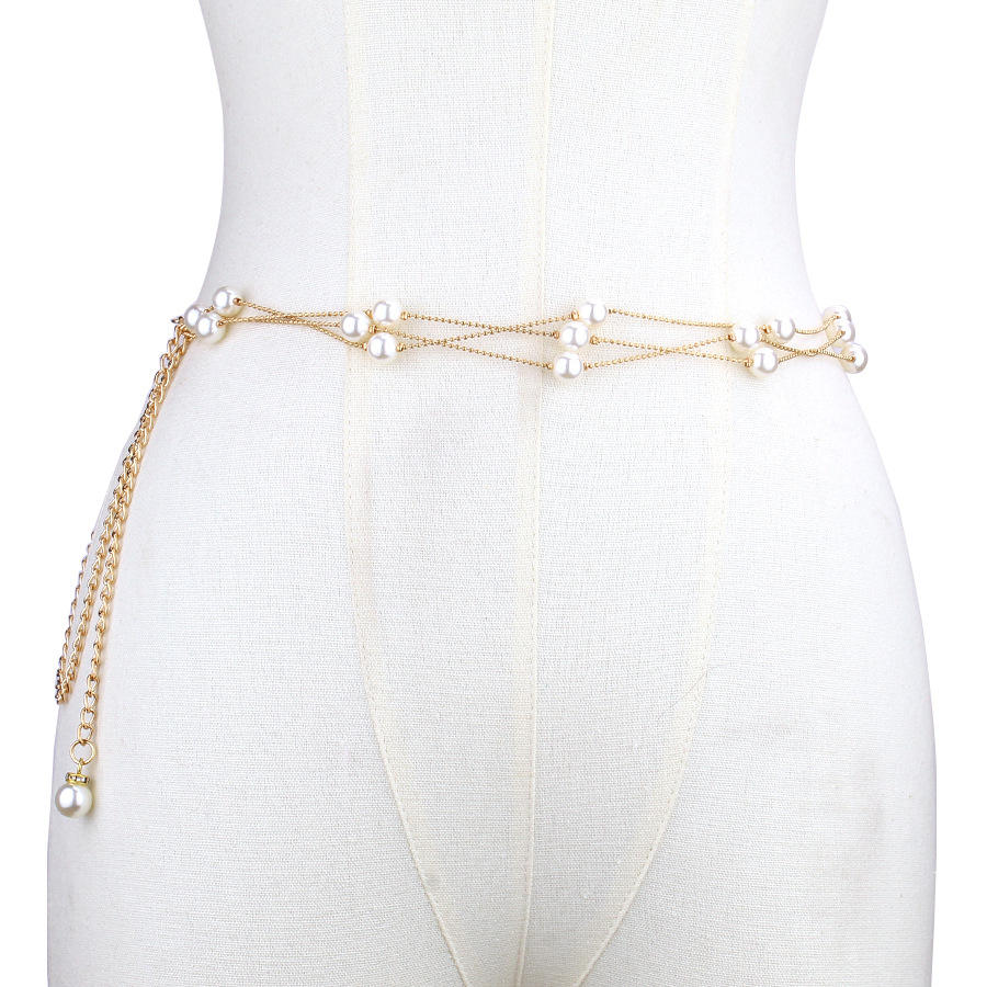 color:Gold Imitation Pearl Double-Layer Waist Chain