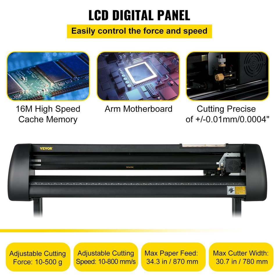 เครื่องตัดไวนิลปรับแรงตัดและความเร็วได้ ขนาด 34 นิ้ว พร้อมระบบป้อนกระดาษ จอ LCD ระบบ Windows ชุดเครื่องพิมพ์ C รวมอุปกรณ์เสริม