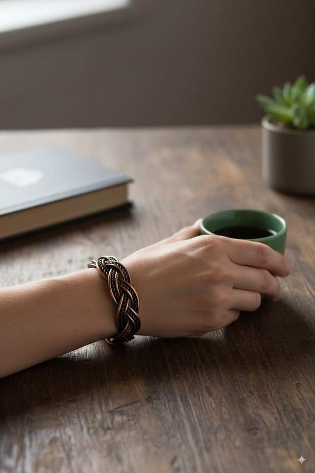 กำไลทองแดงแท้ทำมือปรับขนาดได้เพื่อพลังจิตวิญญาณและการบำบัดรักษา