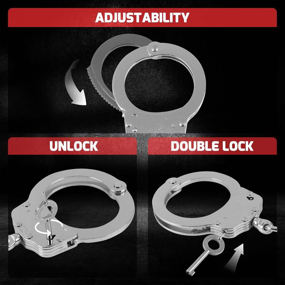 Adjustable Heavy-Duty Steel Wrist Cuffs Double-Lock Handcuffs with 2 Keys Metal Crafts