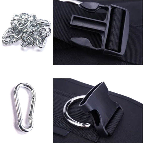เข็มขัดยกน้ำหนักแบบปรับได้พร้อมโซ่เหล็กและไนลอนสำหรับทุกเพศยิมฟิตเนสออกกำลังกาย