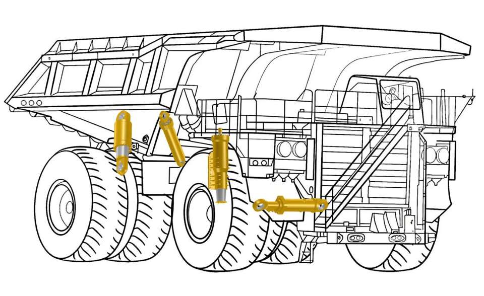 ระบบไฮดรอลิกยกของไฮโดรนิวเมติกส์ช่วงล่างด้านหลัง/ด้านหน้าสำหรับยานพาหนะเหมืองแร่หนักแบบปรับได้