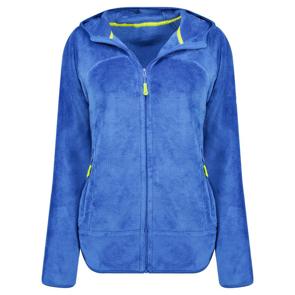 แจ็คเก็ตขนแกะขั้วโลกสำหรับผู้หญิงแจ็กเก็ตมีซิปมีฮู้ดปรับได้สำหรับเดินทางและฤดูหนาวมีโลโก้ตามสั่ง