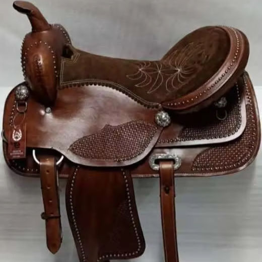 อานม้าปรับระดับได้พร้อมเบาะนั่งลึก ทำด้วยมือจากหนังแท้สไตล์ตะวันตก พร้อมที่วางเท้า รับผลิตตามแบบ (OEM) ขายส่งอุปกรณ์ขี่ม้า โครงไม้