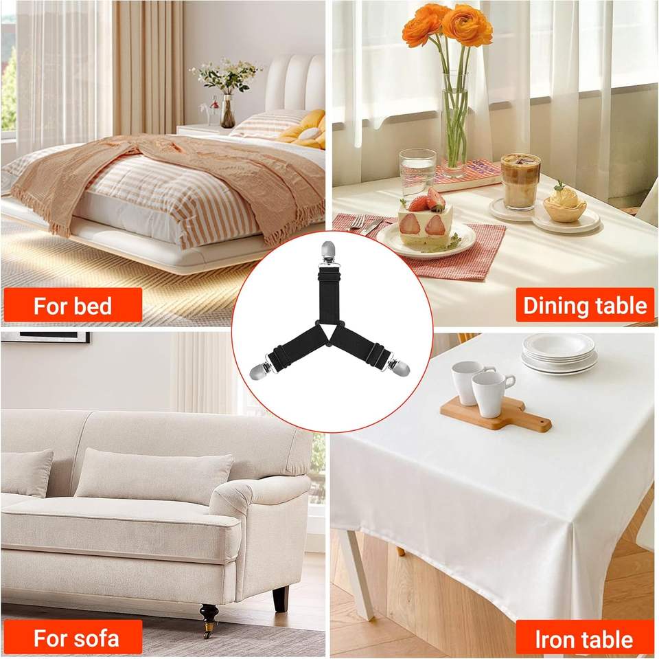 คลิปหนีบผ้าปูที่นอนแบบปรับได้สำหรับใช้ในบ้าน ที่ยึดผ้าห่ม ผ้าปูโต๊ะ ผ้าคลุมโซฟา ทำจากโลหะ