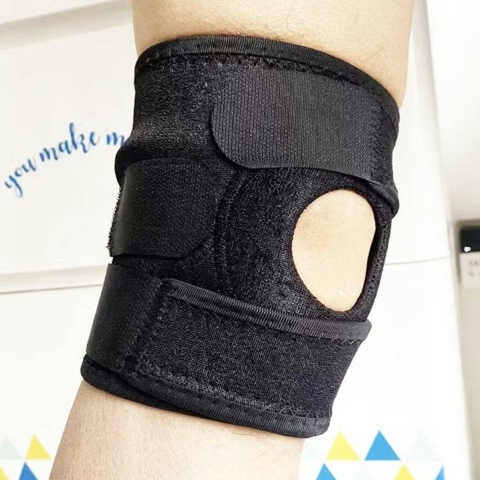 อุปกรณ์พยุงเข่าแบบปรับได้สำหรับป้องกันการบาดเจ็บจากการเล่นกีฬา สีดำ ขนาดเดียวใช้ได้กับทุกคน รองรับแรงกด ช่วยพยุงข้อต่อ ใช้ได้ทั้งชายและหญิง