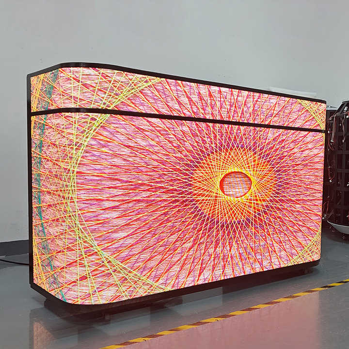 บูธดีเจแบบปรับได้พร้อมไฟ LED ขนาด 72 นิ้ว ยาว 23 x 72 x 45 ซม. โครงโลหะวงกลมคู่เคลื่อนย้ายได้ P2.5 ตกแต่งทรงกลมขนาดใหญ่สุดเท่