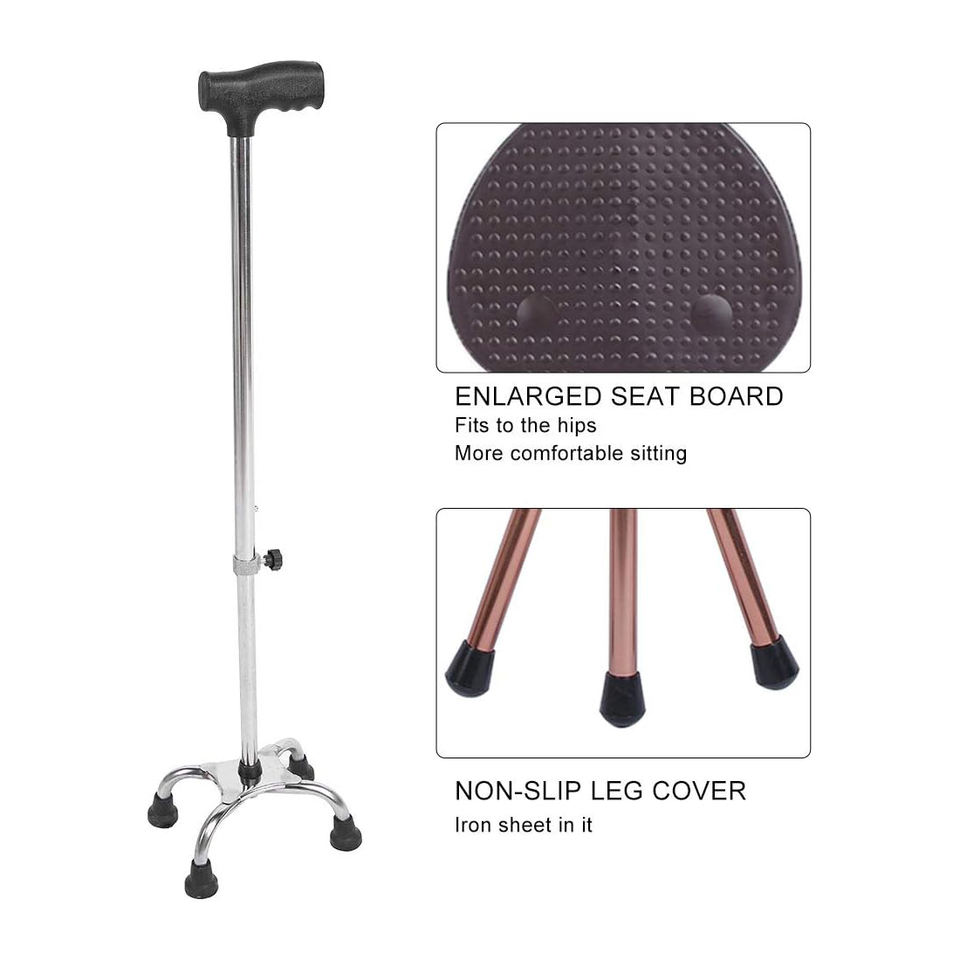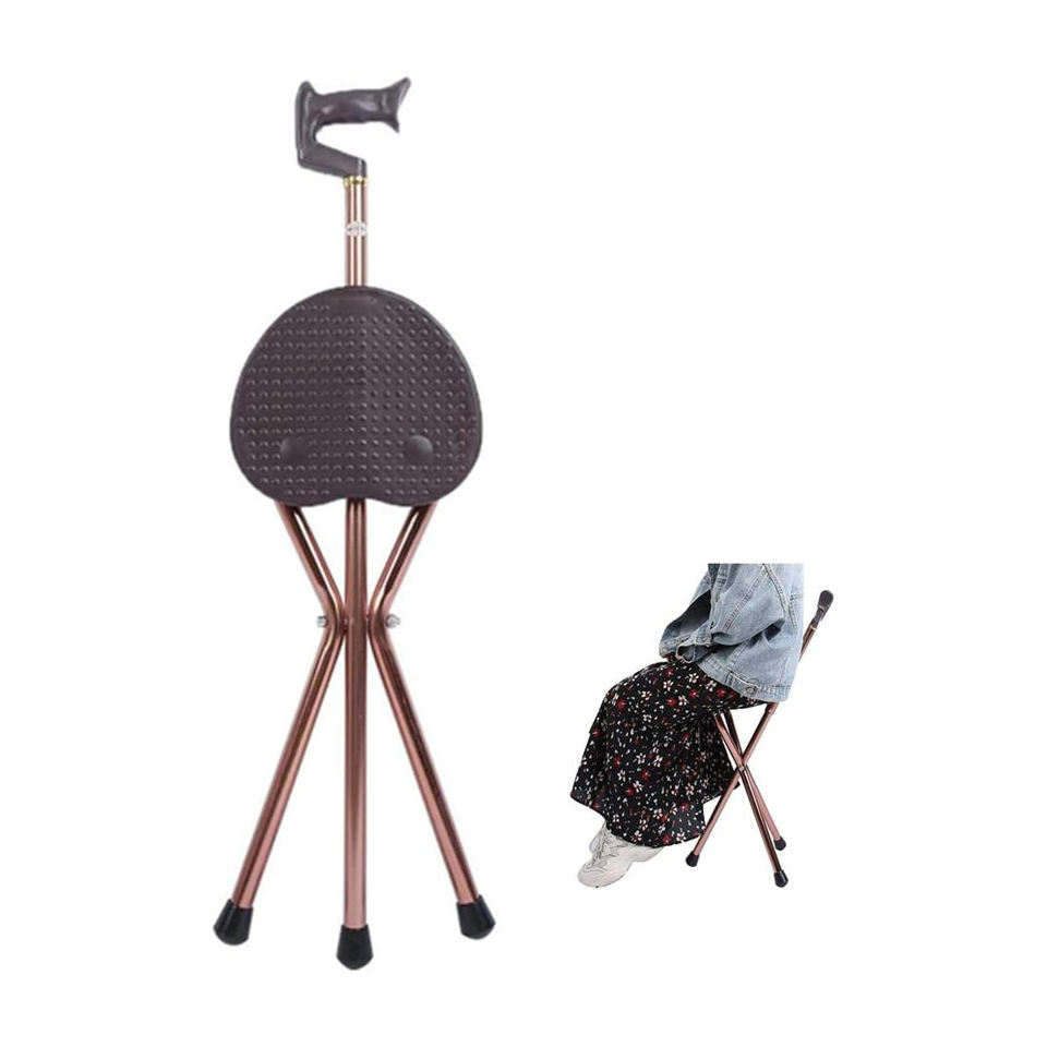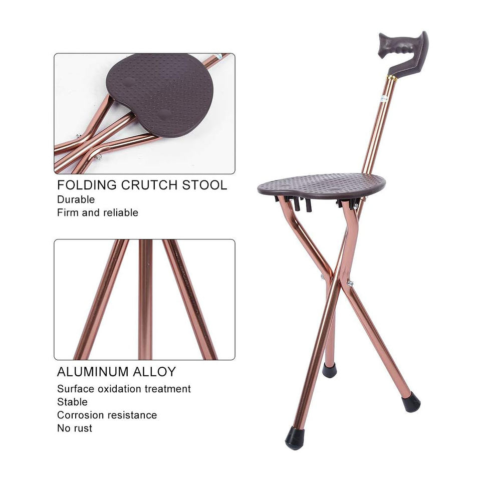 ไม้เท้าน้ำหนักเบาพับได้ปรับได้ที่นั่งสบายใช้ได้ทุกเพศด้ามจับทำจากยางสำหรับทำกิจกรรมกลางแจ้ง-ปลายยางสำหรับปีนเขา