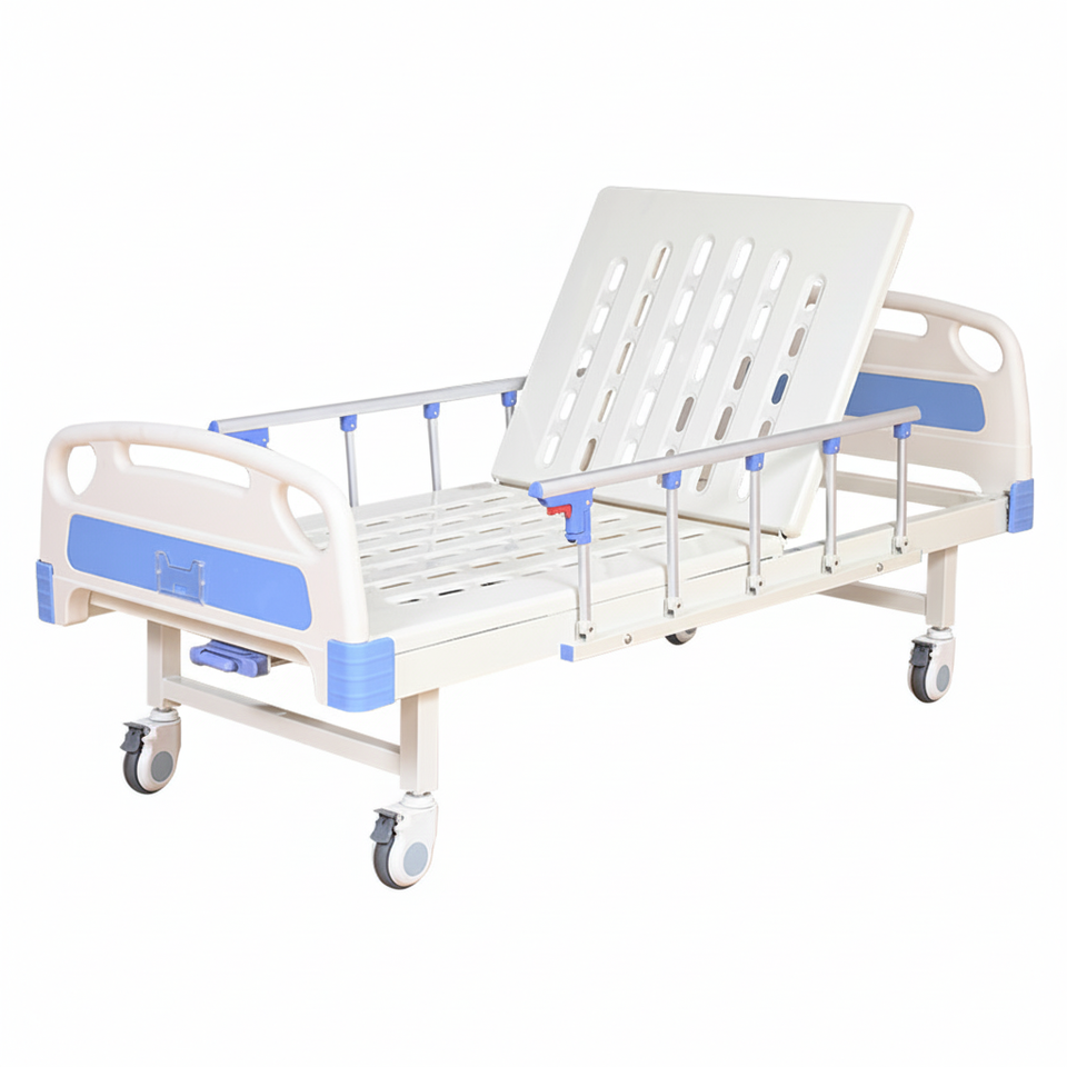 เตียงผู้ป่วยปรับระดับได้พร้อมฟังก์ชันมือหมุนเดียว ทำจากสแตนเลส รับประกัน 3 ปี อุปกรณ์โรงพยาบาล