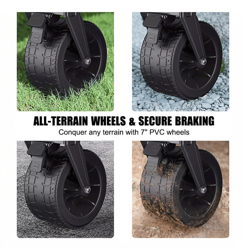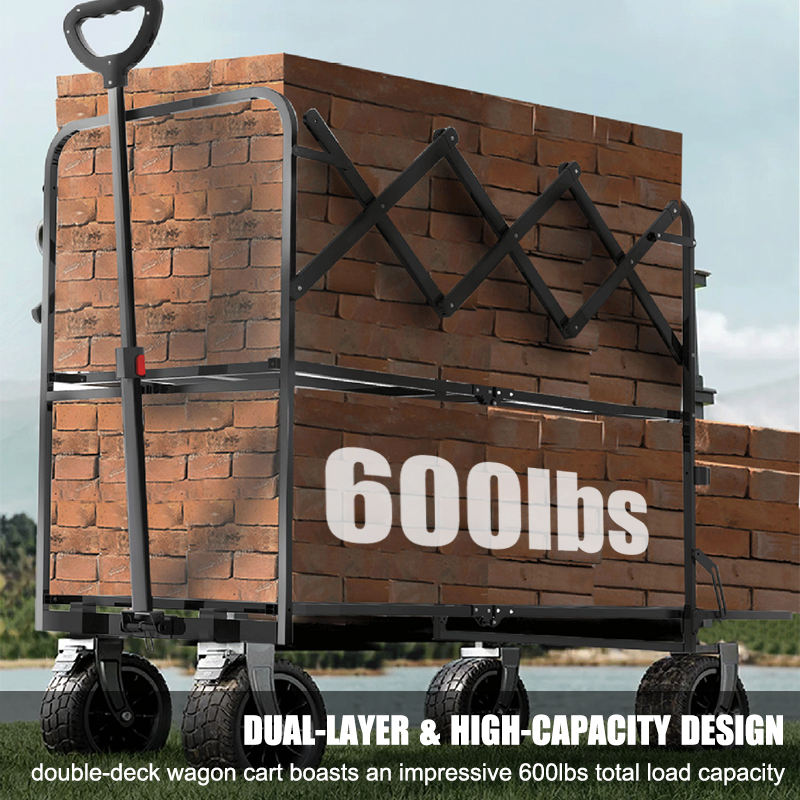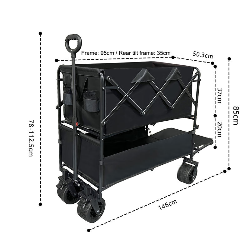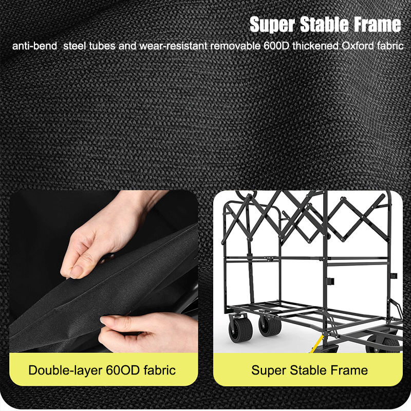 รถเข็นพับได้สองชั้นแบบปรับได้ โครงโลหะ ล้อสี่ล้อ รับน้ำหนักได้ 250 กก. สำหรับงานหนัก ล้อกว้าง ใช้ได้ทุกพื้นผิว