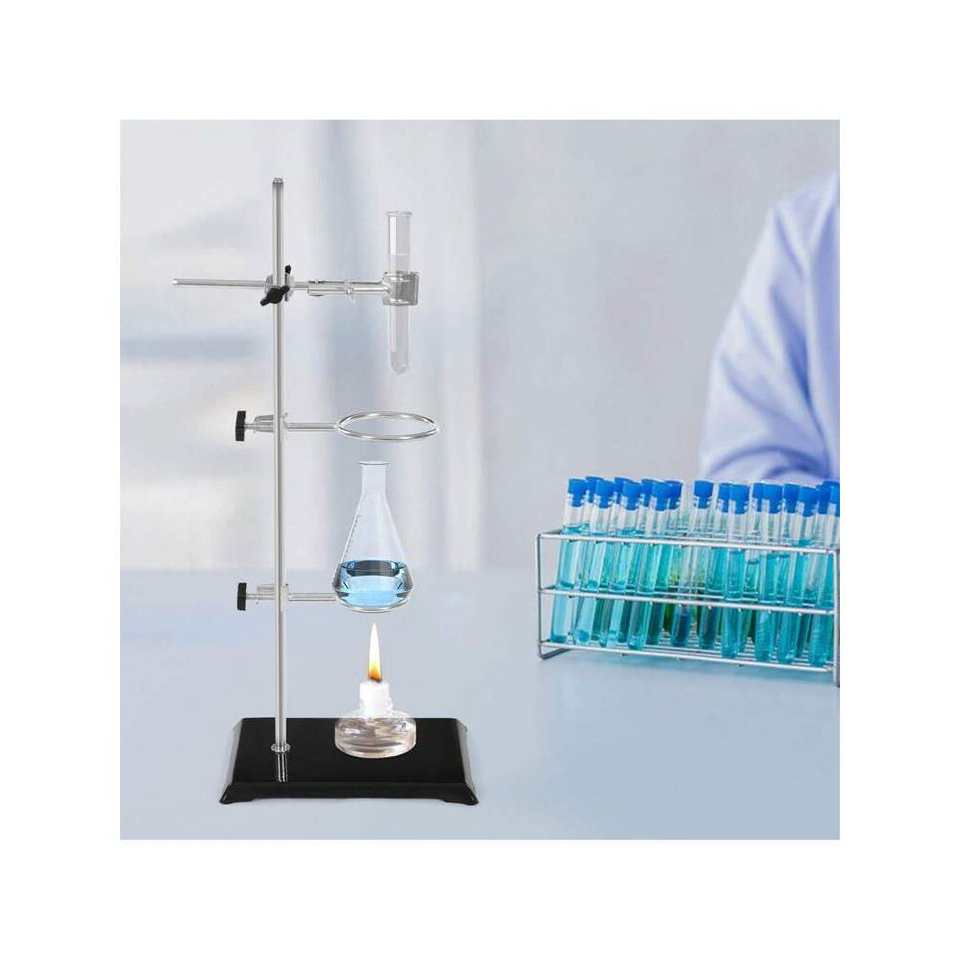 ชุดขาตั้งสำหรับห้องปฏิบัติการที่หนีบเหล็กพร้อมขาตั้งกรวยแก้วแบบปรับได้สำหรับการทดสอบ