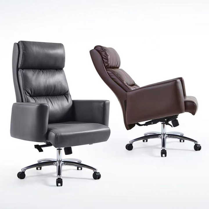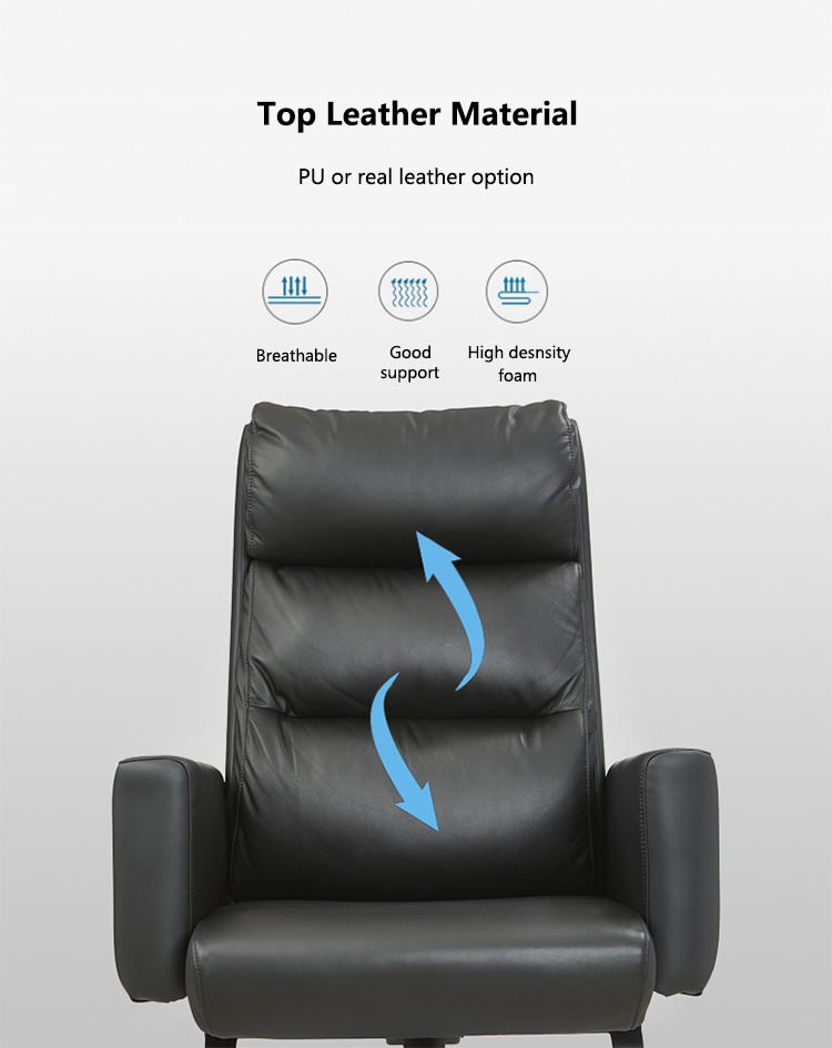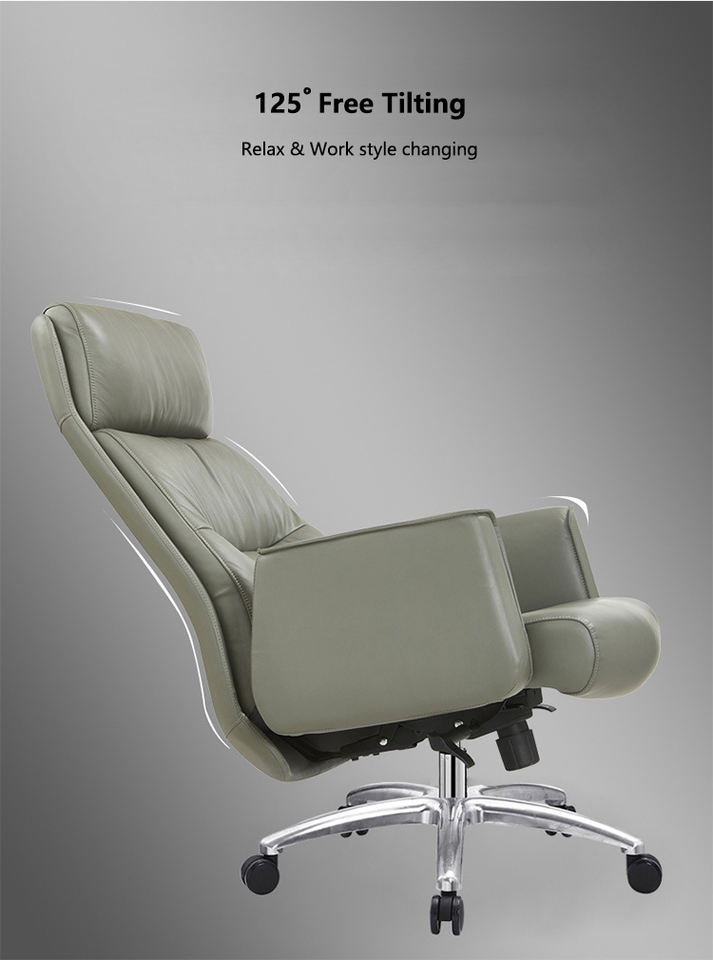 เก้าอี้หนังสำนักงานหรูหราสะดวกสบายปรับได้ดีไซน์ทันสมัยมีพนักพิงศีรษะขนาดใหญ่