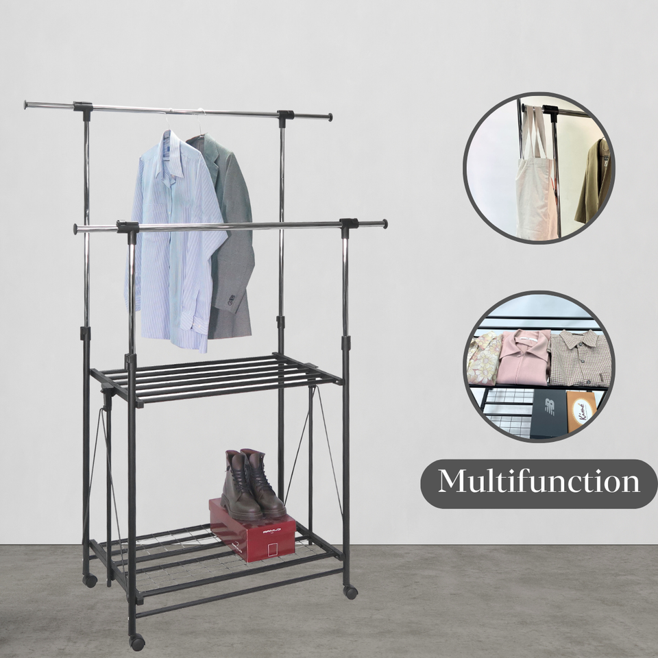 Product Name:Multi-purpose height ajustable clothing stand with four wheels