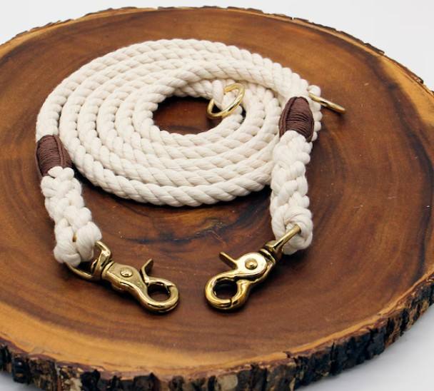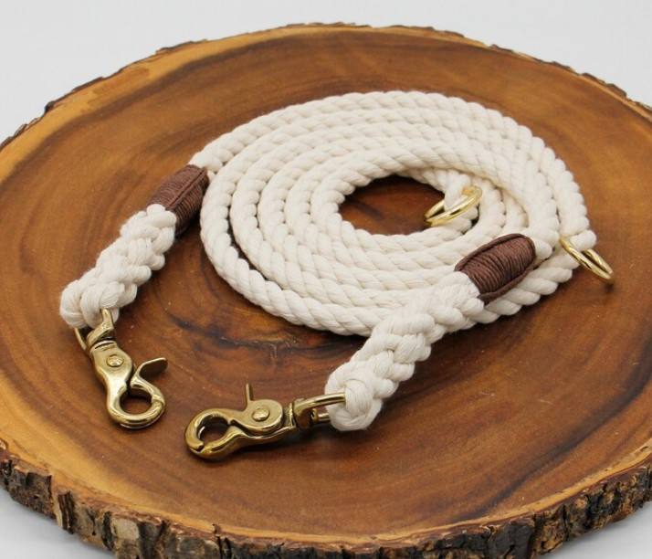 สายจูงสุนัขแบบปรับได้ทำจากเชือกฝ้ายธรรมชาติ - สายจูงสุนัขแบบปรับเปลี่ยนได้, สายจูงสุนัขแบบแฮนด์ฟรี