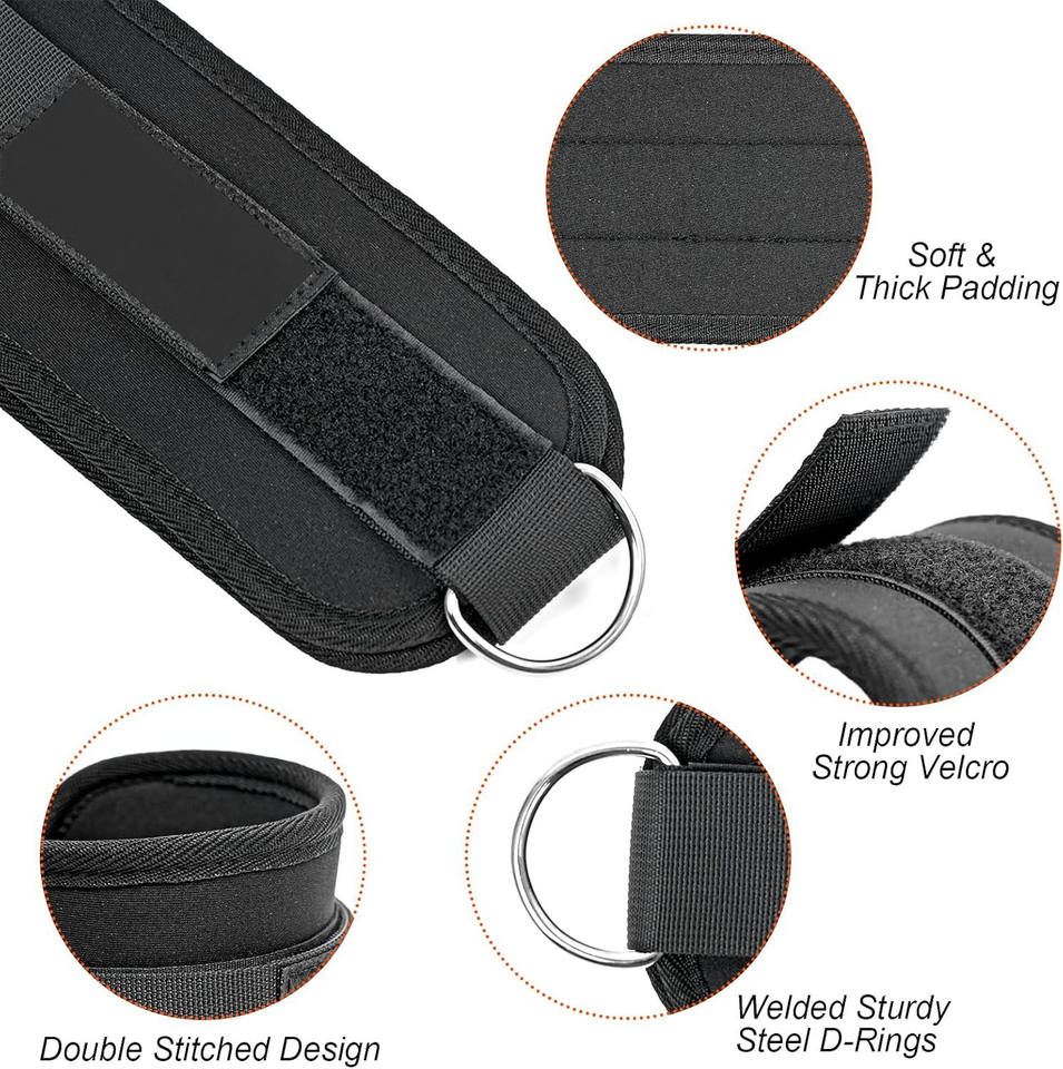 สายรัดข้อเท้าแบบปรับได้ทำจากนีโอพรีนสำหรับเครื่องเคเบิล สายรัดออกกำลังกายแบบหนาพิเศษสำหรับบริหารกล้ามเนื้อสะโพก เหมาะสำหรับผู้ชายและผู้หญิง สามารถปรับแต่งได้