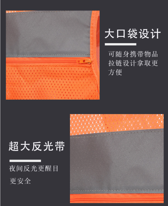 มองเห็นได้ชัดเจน, กระเป๋าหลายช่อง, สะท้อนแสง, งานก่อสร้าง, การจราจร, โลโก้ที่กำหนดเอง, ความปลอดภัย, ถนน, ซักได้, ใช้ซ้ำได้, ระบายอากาศ, โลโก้ที่กำหนดเองคุณสมบัติพิเศษ