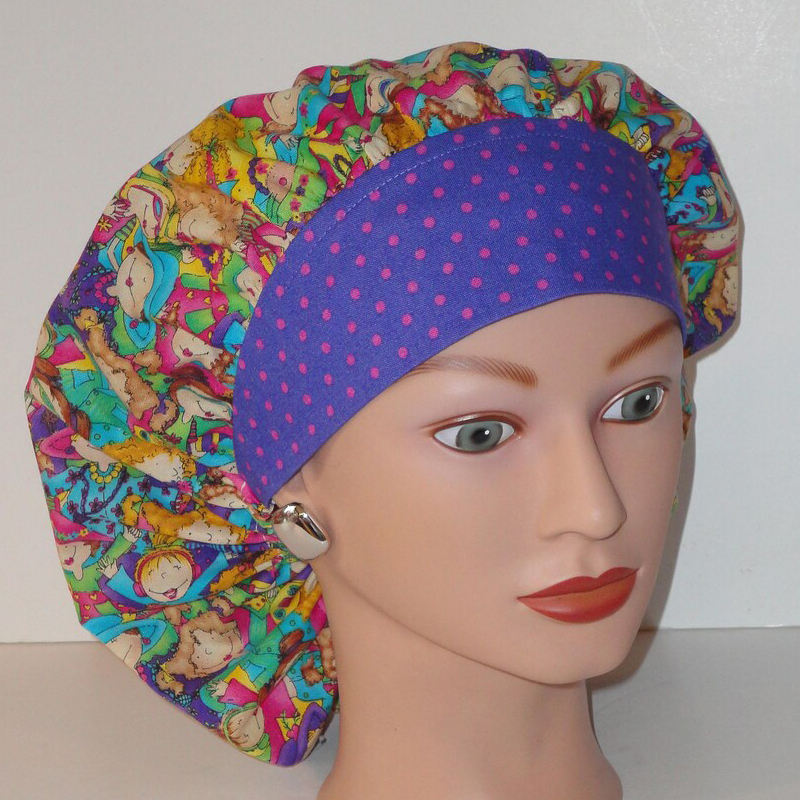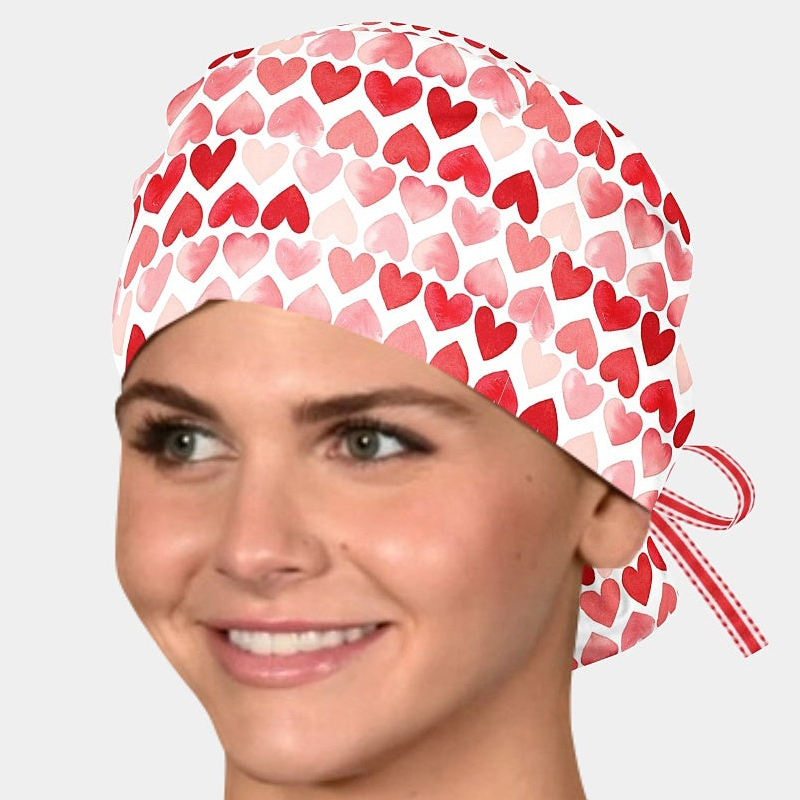 หมวกสครับสำหรับผู้หญิงทำงานพยาบาลแบบปรับได้มีกระดุมระบายอากาศและปรับได้