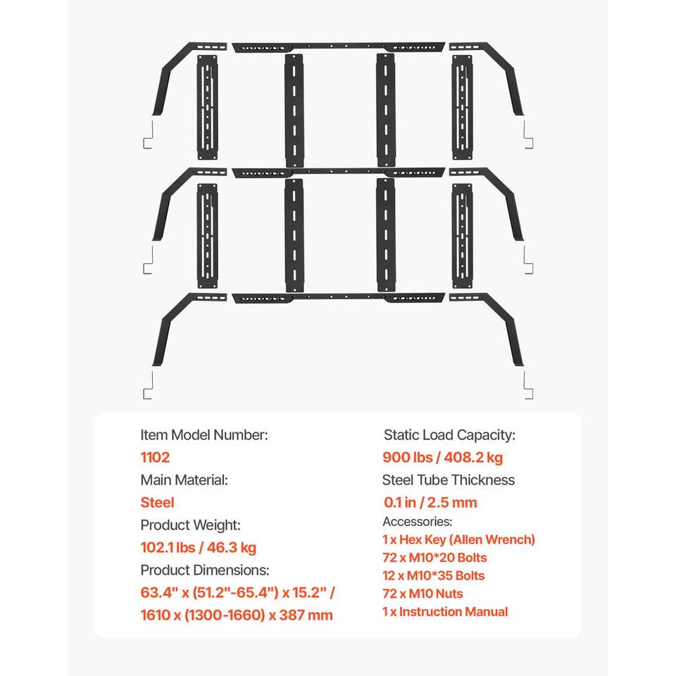 แร็คหลังคารถบรรทุกแบบปรับได้ ขนาดกว้าง 51.2-65.4 นิ้ว อุปกรณ์ควบคุมสินค้า รับน้ำหนักได้ 900 ปอนด์ รองรับการใช้งานกับสินค้าต่างๆ