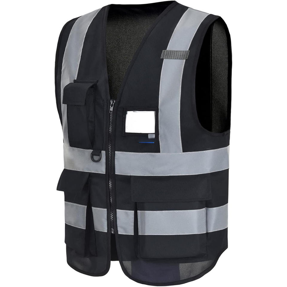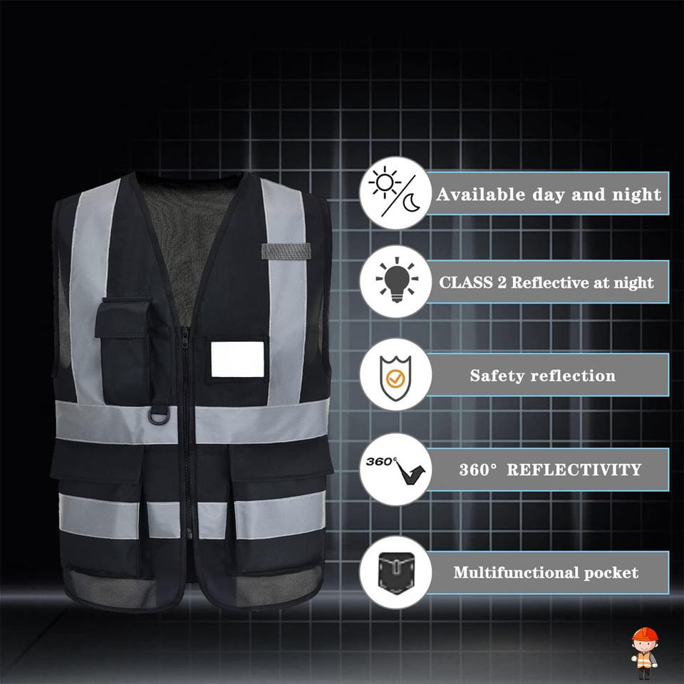 เสื้อกั๊กนิรภัยผ้าโพลีเอสเตอร์แบบปรับได้เสื้อกั๊กสะท้อนแสงเพื่อความปลอดภัยในการทำงานมองเห็นได้ชัดเจนพร้อมโลโก้ออกแบบได้ตามต้องการ
