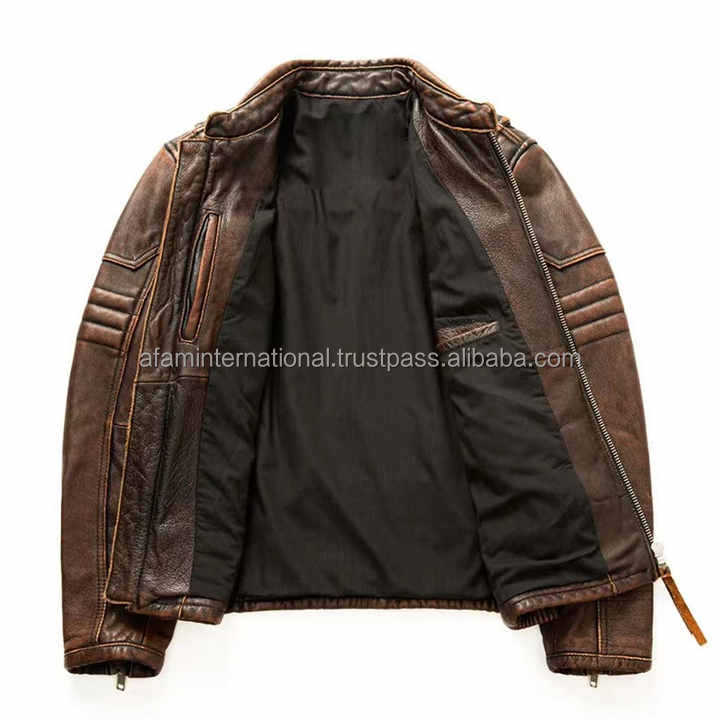 แจ็คเก็ตหนังผู้ชายสีเขียวแบบปรับราคาได้ สไตล์วินเทจ ผลิตโดยมืออาชีพ คุณภาพดีที่สุด