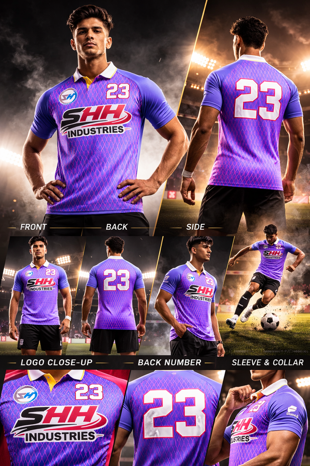 ตำแหน่งโลโก้:ด้านหน้า, ด้านหลัง, แขนเสื้อด้านซ้าย, แขนเสื้อด้านขวา, ขอบล่าง, หลังคอ