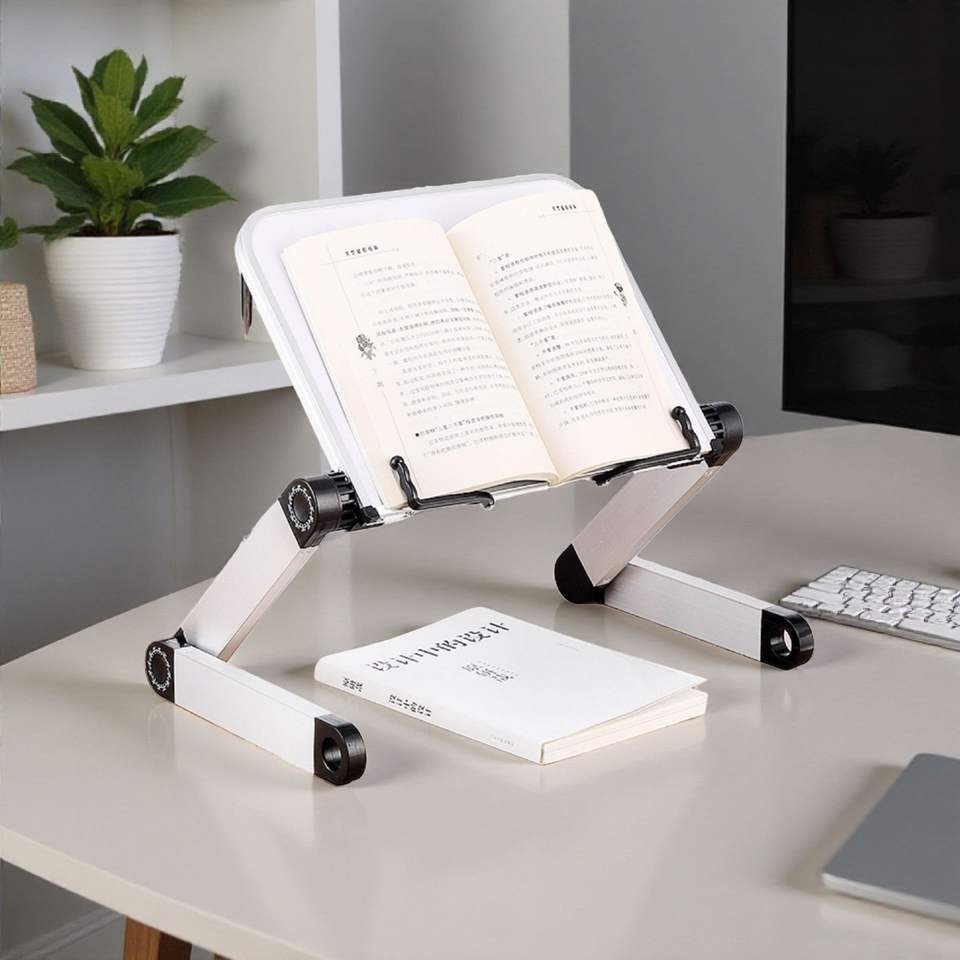 ขาตั้งอ่านหนังสือแบบปรับได้สำหรับหนังสือแท็บเล็ตที่วางโต๊ะอลูมิเนียมอัลลอยด์สีขาวสีดำ 30x24 Mdf รองรับชั้นวางหนังสือพร้อมความสูง