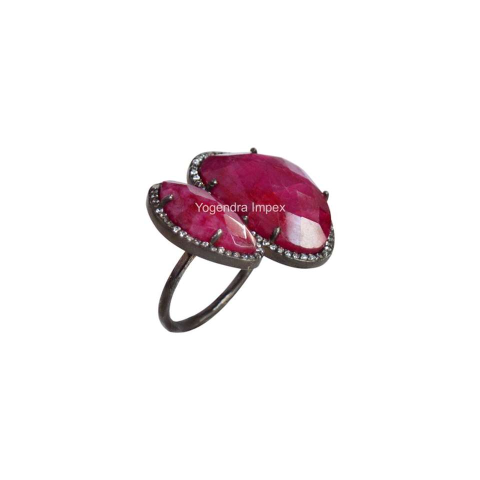 ปรับสีแดงย้อมทับทิมแหวนพลอยกับลูกบาศก์เพทาย925เงินสเตอร์ลิงสีดำโรเดียมชุบงดงามแหวนสำหรับผู้ค้าส่ง