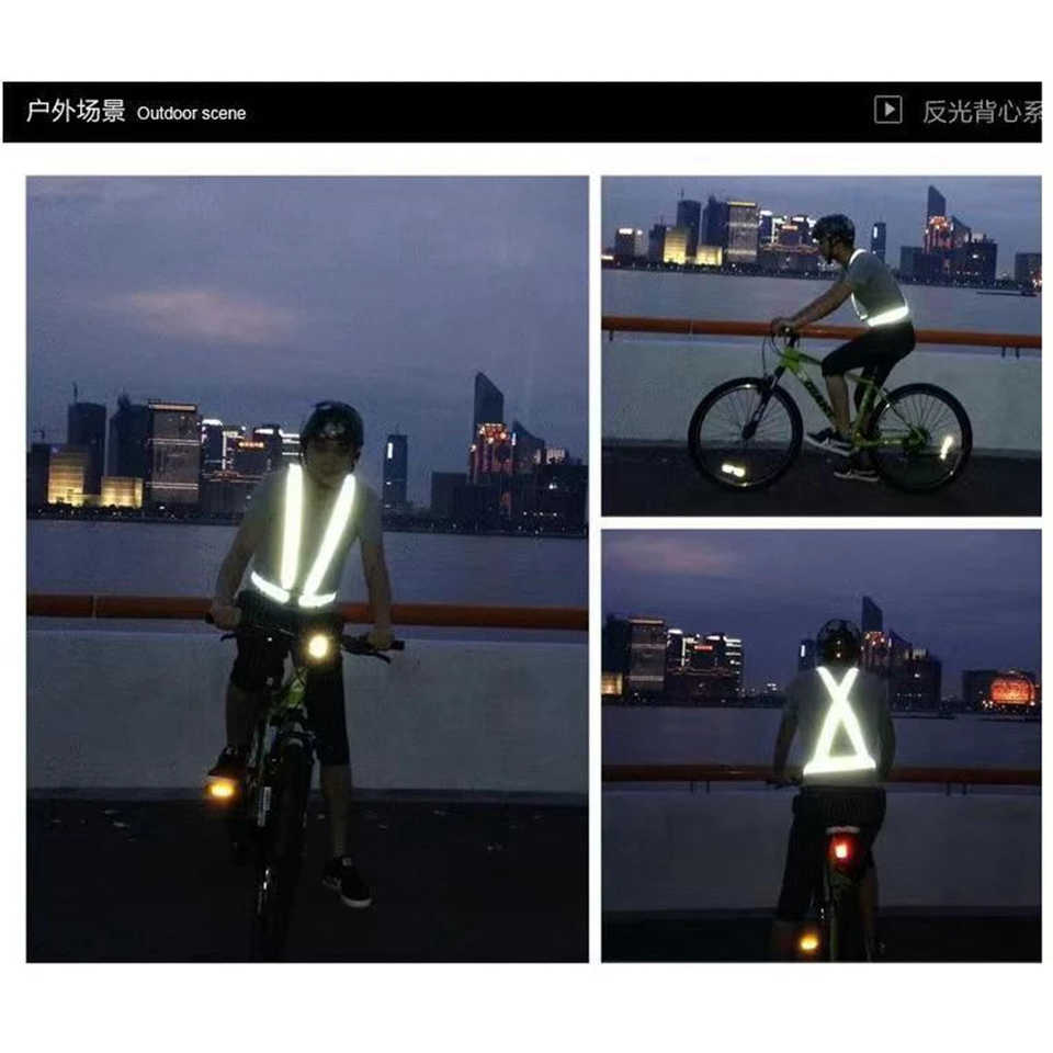 เสื้อกั๊กสะท้อนแสงแบบปรับได้พร้อมสายรัดที่มองเห็นได้ชัดเจนสำหรับการวิ่งกลางคืน ปั่นจักรยาน และกีฬากลางแจ้ง